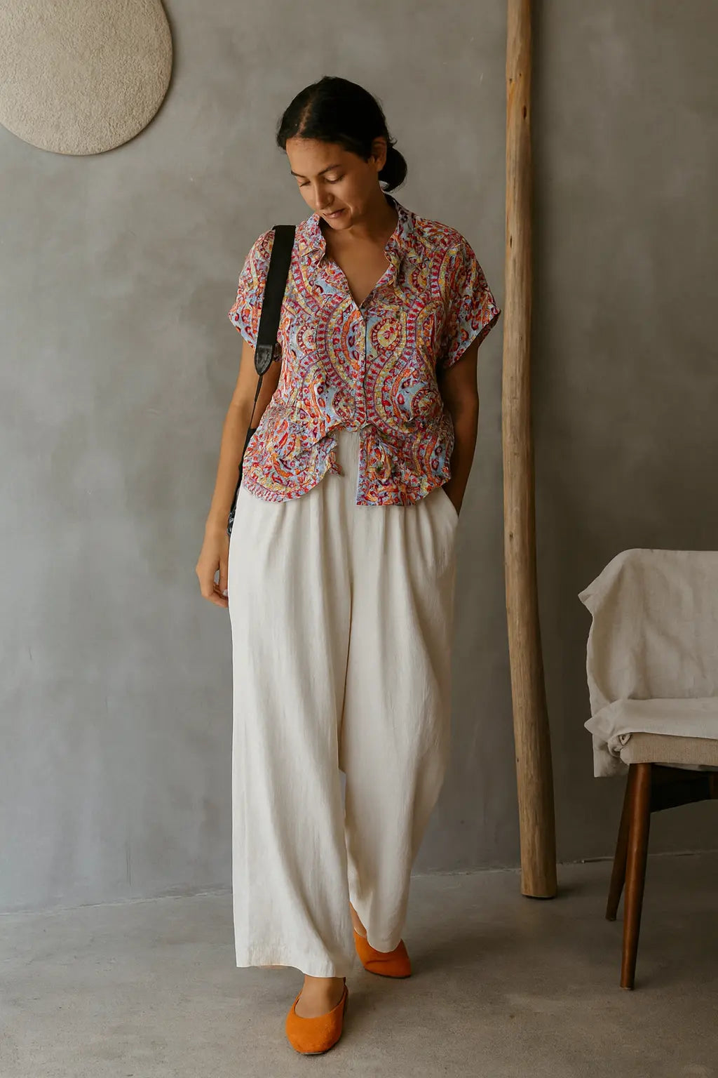 The Ivy Pure Natural Linen Colorwave Abstract Shirt is a stylish and contemporary piece made from 100% natural linen. Featuring an eye-catching abstract colorwave design, it offers both comfort and sophistication. Perfect for casual outings or smart-casual events, it blends modern aesthetics with timeless fabric.