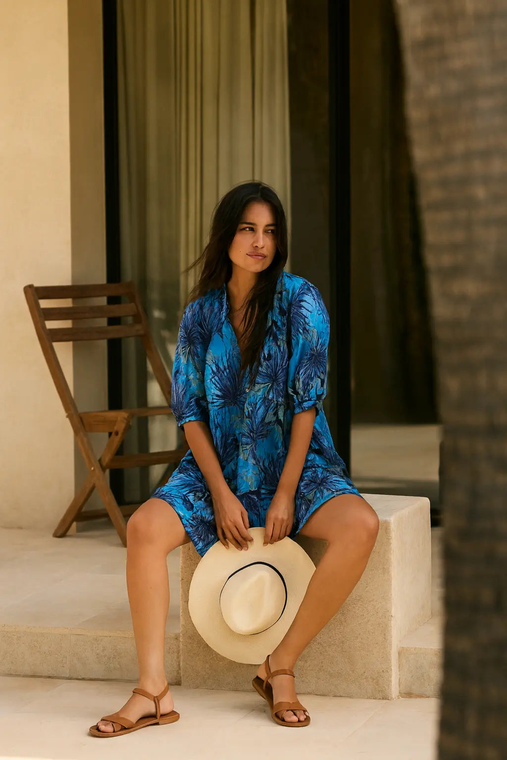 The Marina Pure Natural Linen Palm Petals Dress is an elegant and breezy piece made from 100% natural linen, offering both comfort and sophistication. Its soft fabric drapes beautifully, with a unique palm petal print adding a touch of nature-inspired charm. Perfect for warm weather, this dress combines timeless style with a relaxed, yet refined, aesthetic. Ideal for casual outings or beachside escapes, it’s a must-have for effortless summer style.