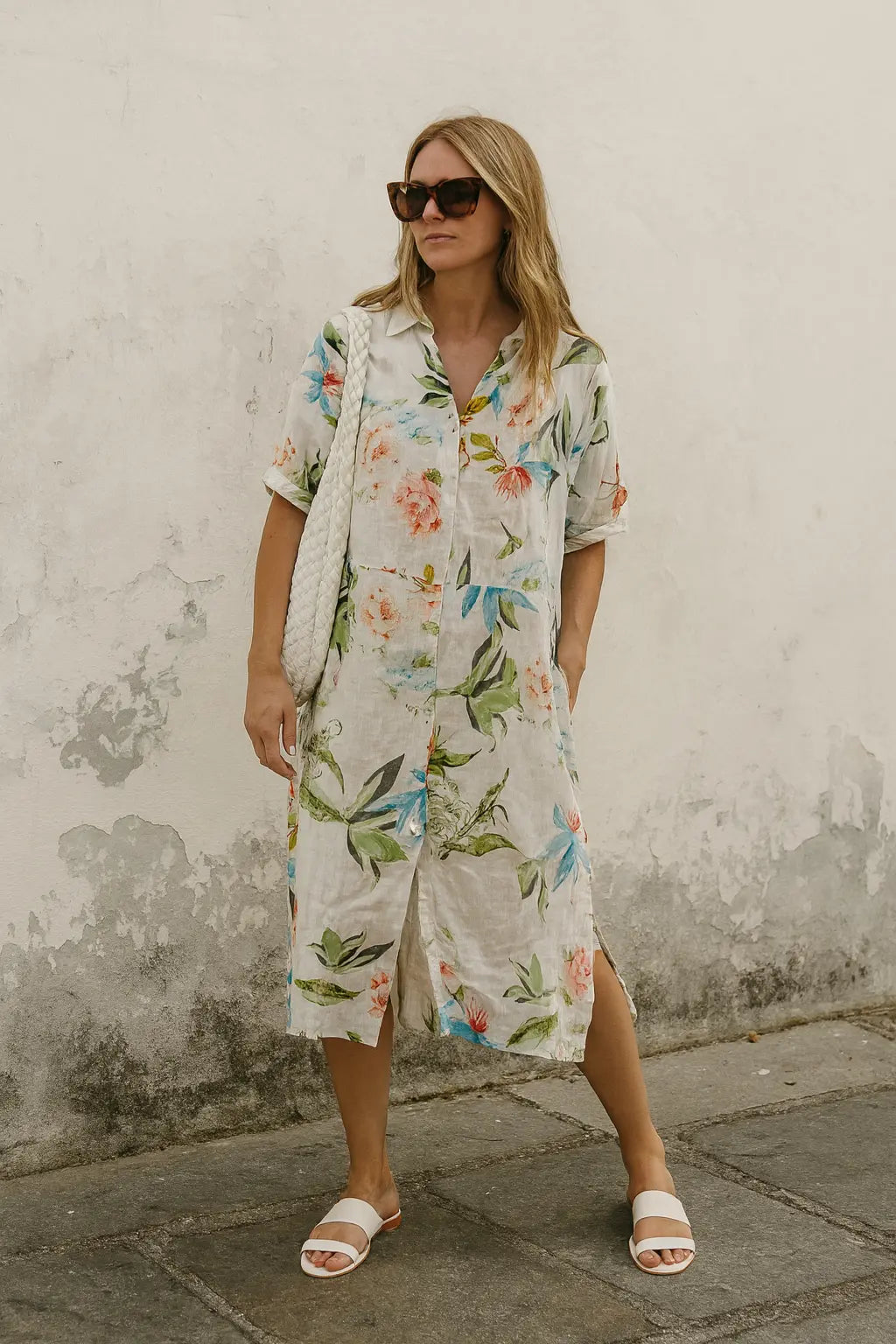 The OMERALA Shacket Pure Natural Linen Floravine Dress combines elegance and comfort in a versatile design. Crafted from premium natural linen, it features a relaxed shacket style and a delicate floravine pattern, perfect for any occasion. Breathable and stylish, this dress is a timeless addition to your wardrobe