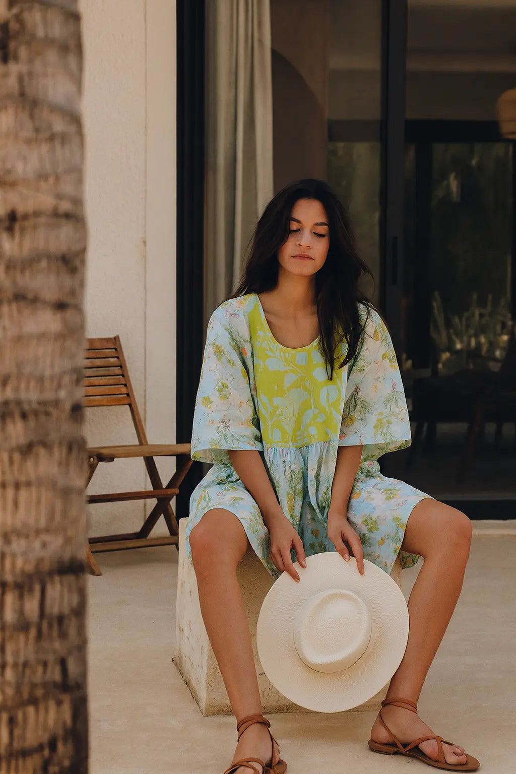 The Palma Pure Natural Linen Fluttering Blooms Dress is a timeless, elegant piece crafted from soft, breathable linen. Featuring a delicate floral print, this dress exudes a natural, effortless charm. Its fluttering design and flowing silhouette make it perfect for warm weather, offering comfort and style in one. Ideal for casual outings or relaxed gatherings, this dress combines nature-inspired beauty with a laid-back, chic vibe.