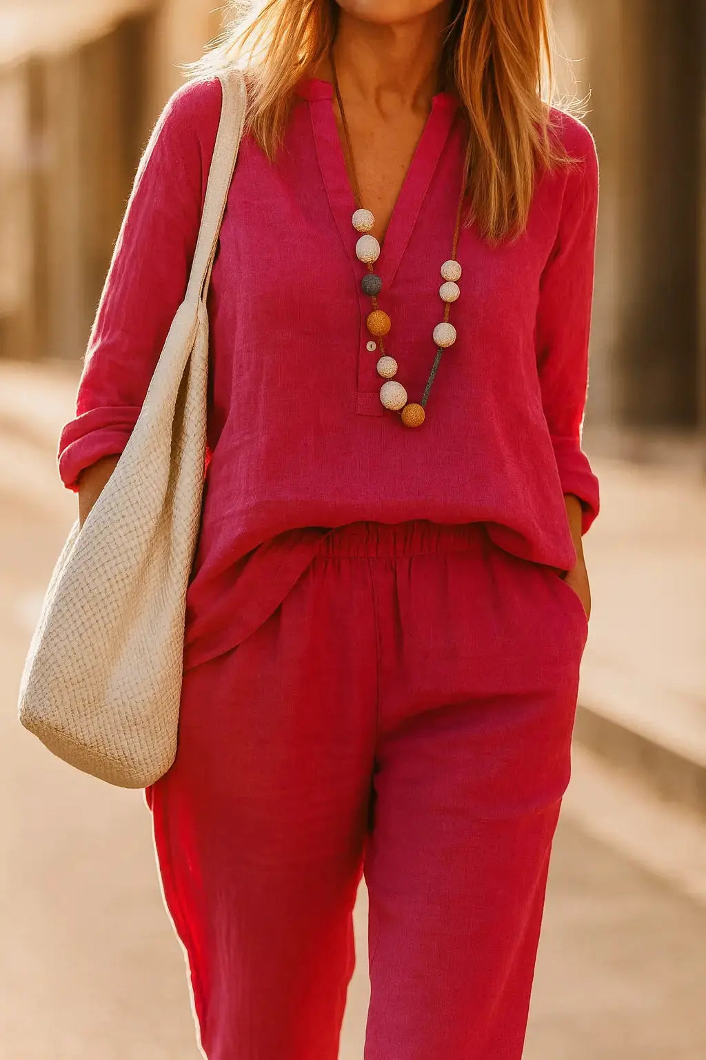 • Lucia Pure Natural Linen Solid Color Shirt – Crafted from 100% natural linen, this shirt offers a soft and breathable feel. Its simple solid color design makes it a versatile wardrobe essential. Ideal for both casual and semi-formal looks, providing effortless style and comfort.