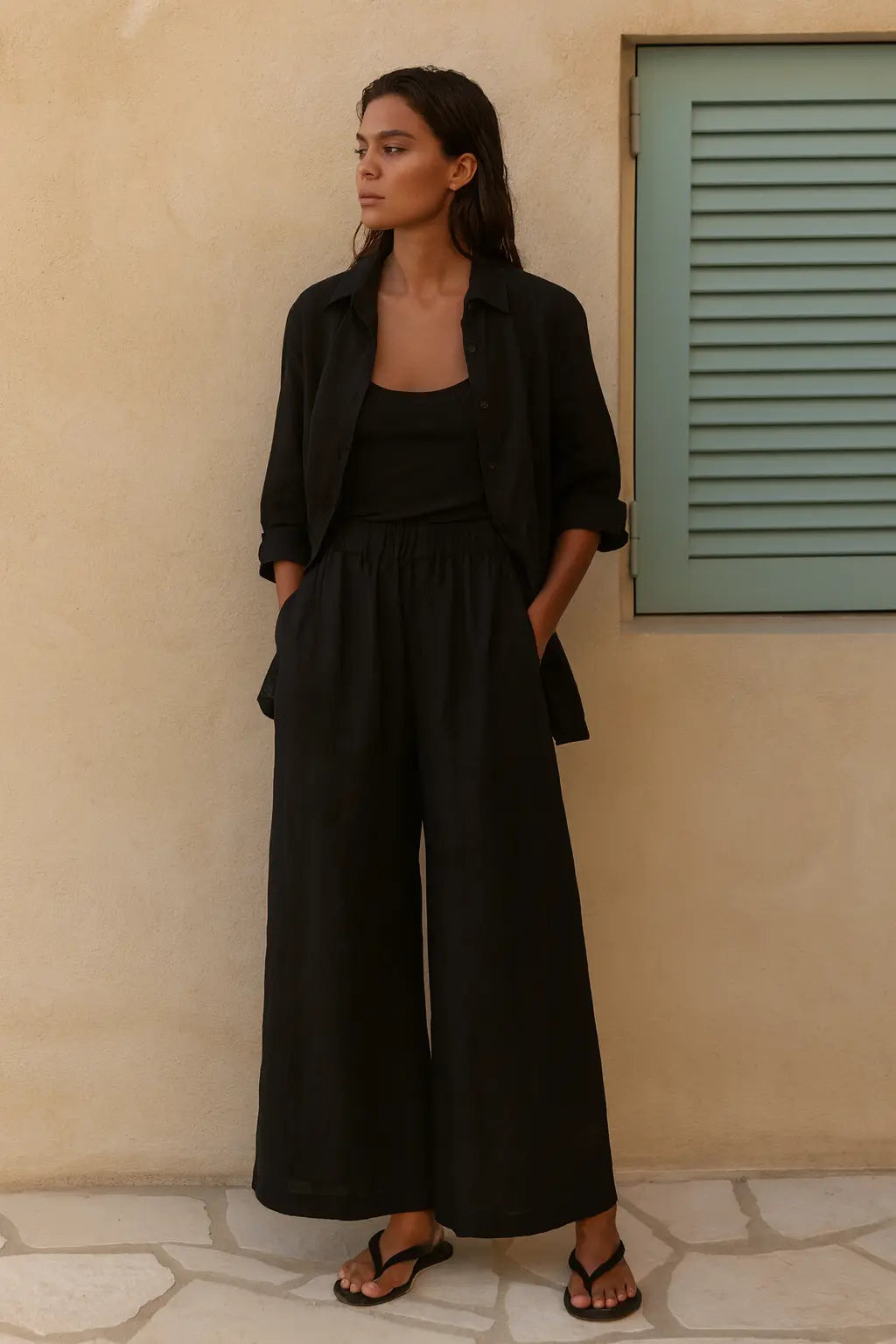 The NARLA Pure Natural Linen Solid Color Co-Ord Set features a stylish and contemporary design, combining soft, breathable linen fabric.. The set includes a comfortable, tailored top and matching bottoms for a chic and relaxed look. Perfect for casual or semi-formal occasions, this ensemble offers a blend of comfort and modern fashion.